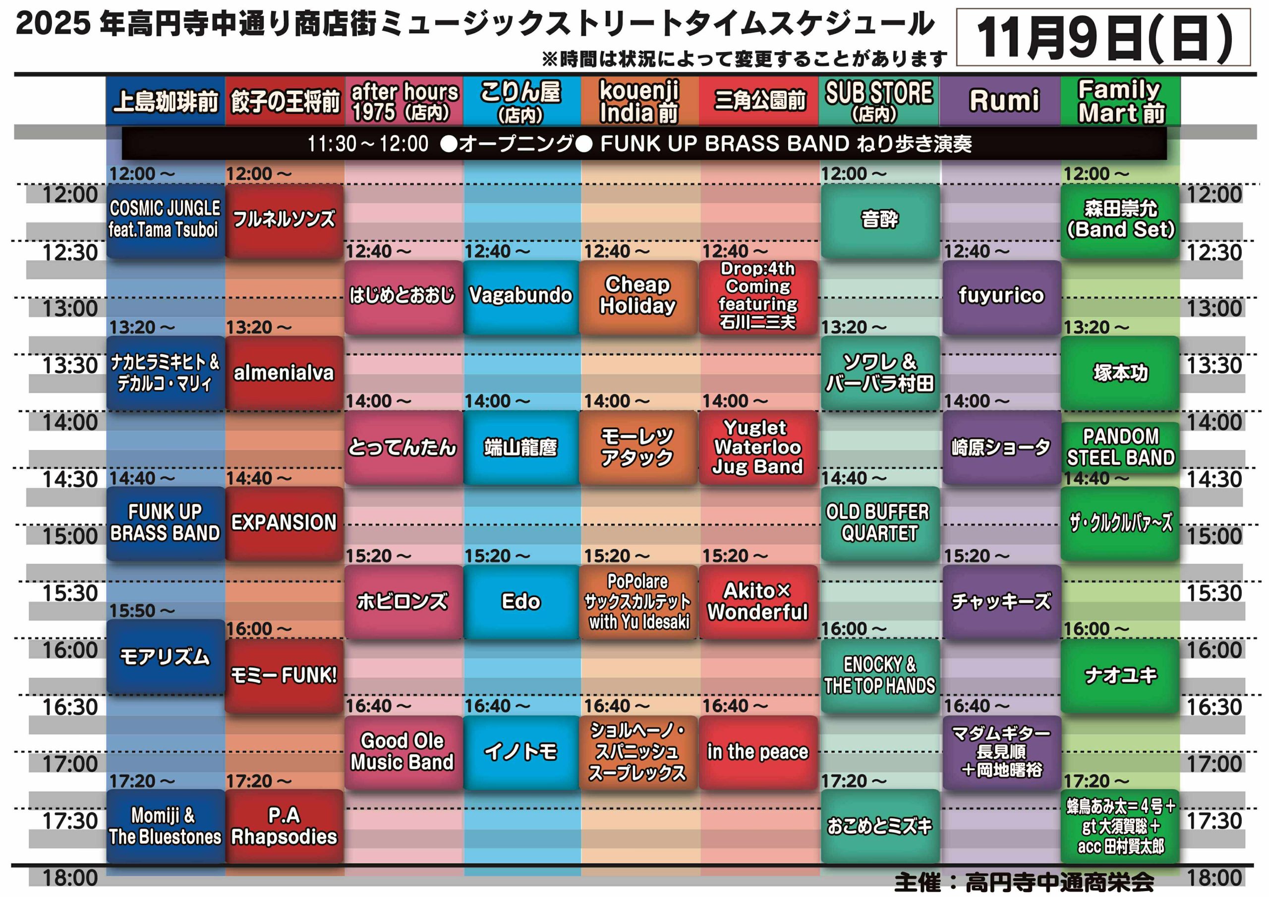 オープン13:00/スタート14:00 (夕方までに終了予定)